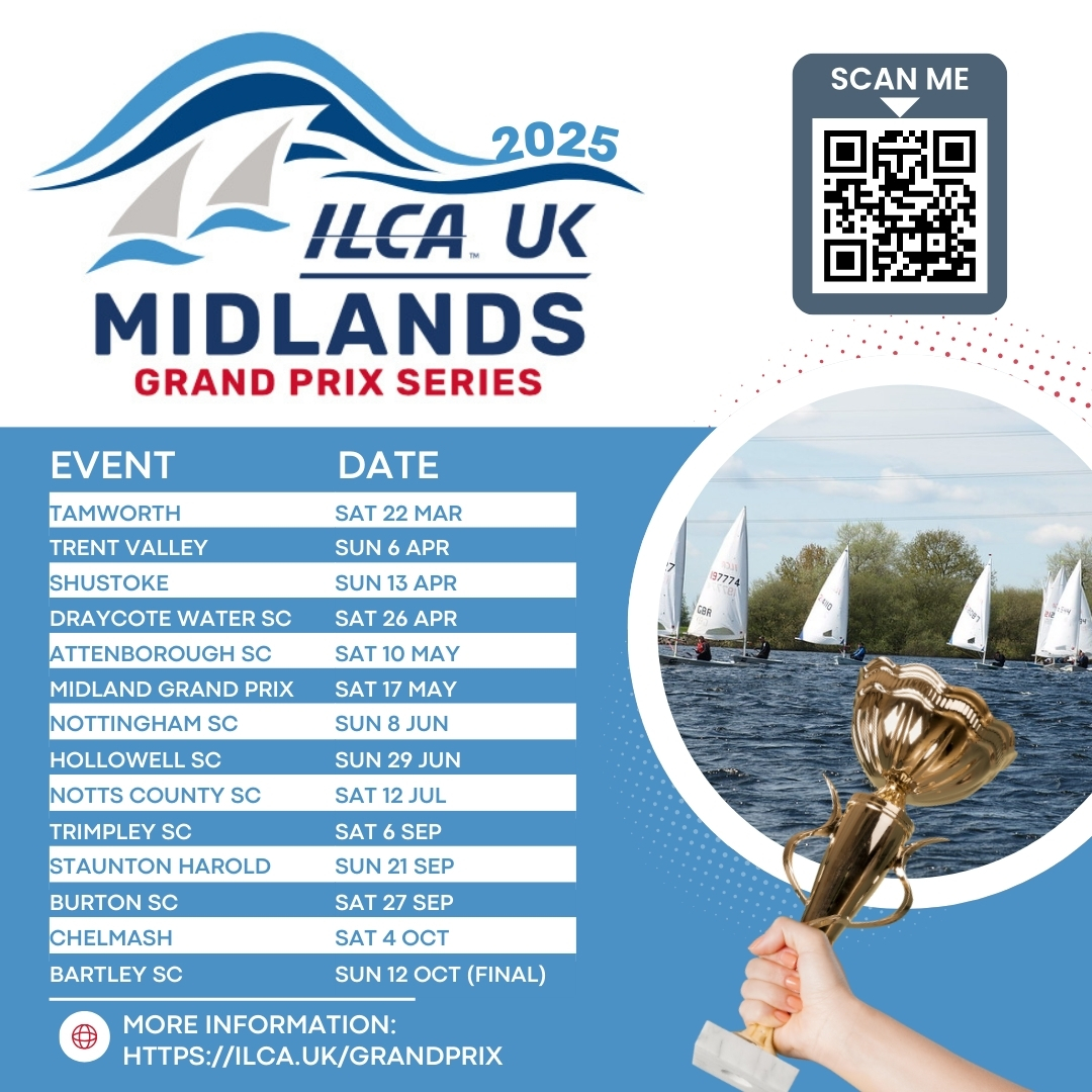 The Laser Open is part of the ILCA UK Midland Grand Prix Series (see below).